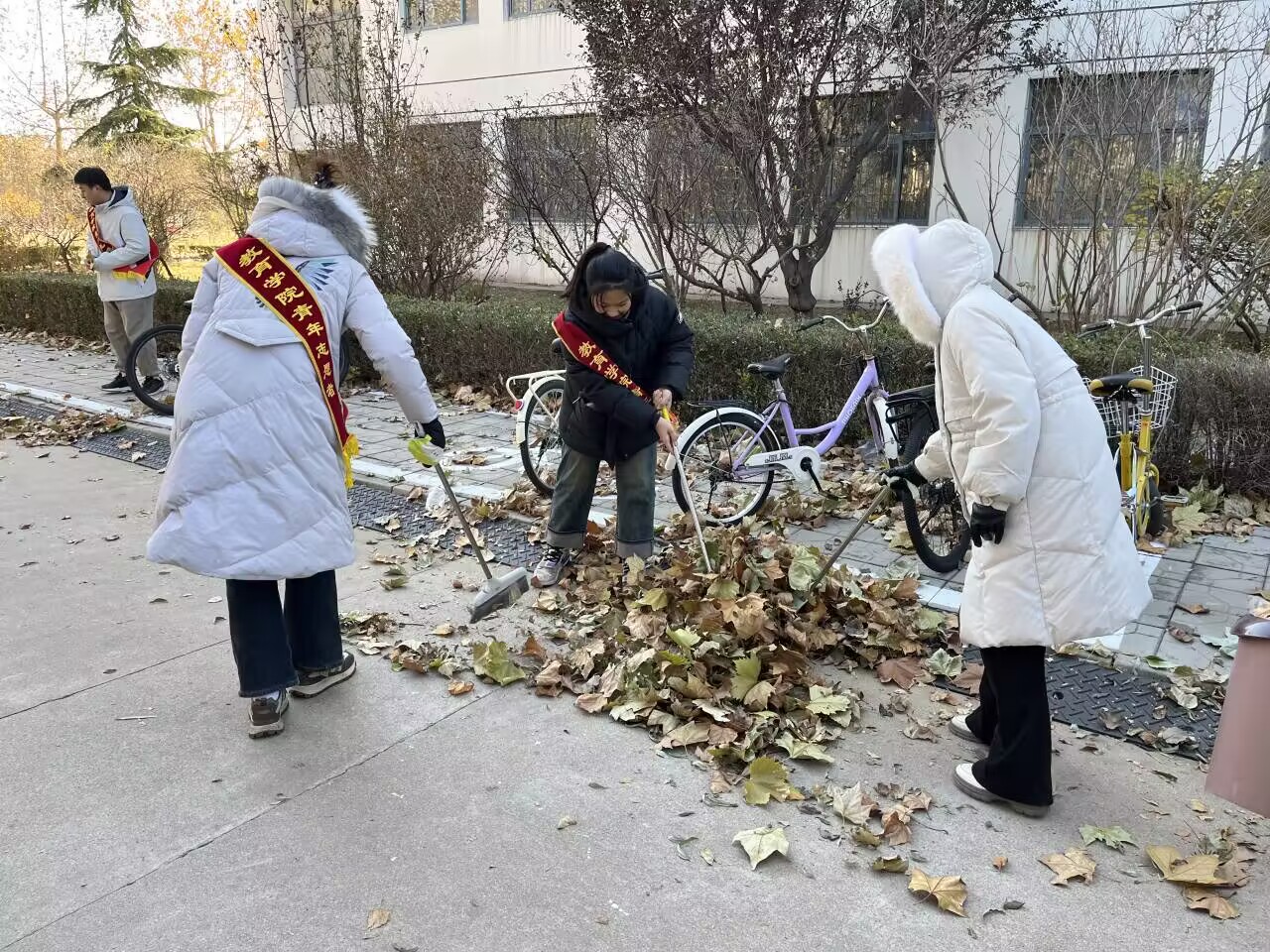 2023年11月18日,304永利集团员工第一党支部开展以志愿服务为主题的党日活动。31名员工党员于下午一点准时到达集合地点签到并领取绶带和清扫工具,对综合楼东侧道路的落叶进行清扫。在清扫过程中,各位员工党员不畏寒风,认真清扫,道路经过大家的打扫后变得干净整洁。在清扫落叶的过程中,员工党员主动作为、奋发有为、担当善为,为员工和公司办实事,将自己投身到奉献中去,务求实效,在各项工作中发挥模范表率作用,在努力将个人发展融入到公司、公司以及社会建设中去。