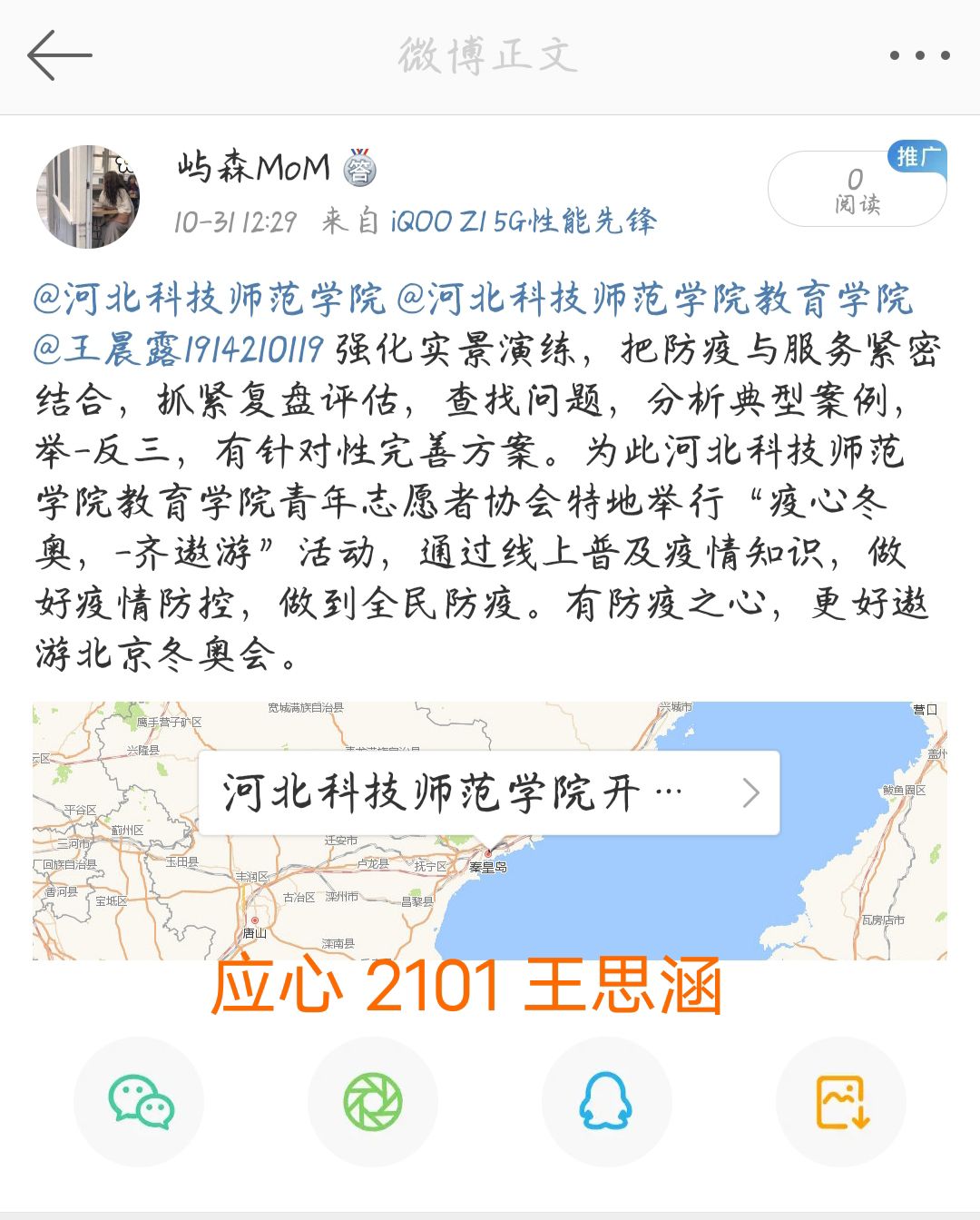 考虑到疫情的形势变化和冬奥的临近,为做好疫情防护工作,提高师生防疫知识与意识,更好地为迎接2022年北京冬奥会做准备,2021年10月31日,公司开展了微博打卡志愿者活动。