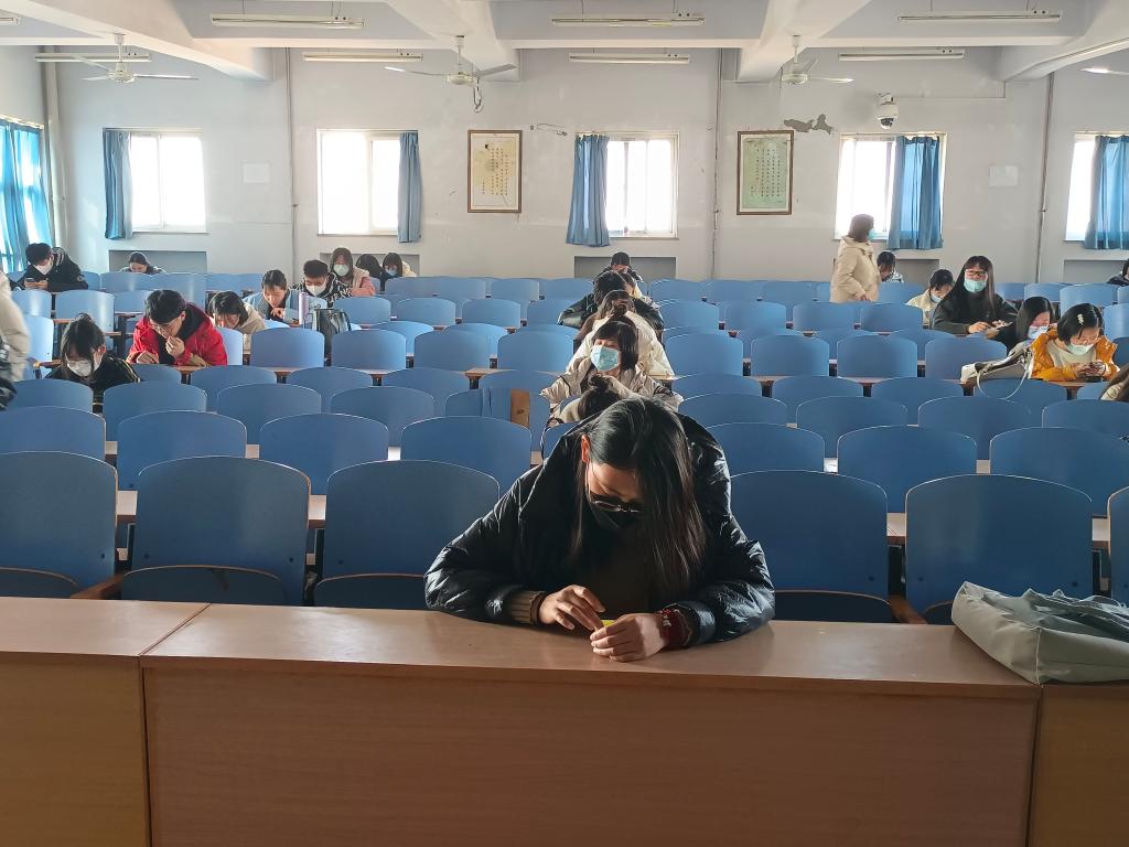 团干部成员提前十分钟到达考场进行签到,并按照校园疫情防控相关要求隔位就坐,随后校员工会组织部部长李利同志检查核对了参考人员的一卡通信息,确保每位同学都是本人参考。本次考试为线上答题,考生们通过扫描考试二维码进入答题页面,考试的内容主要包括团史知识、团的基本知识、团务知识和时事政治知识等,同学们在答题过程中严守考试纪律,认真作答,没有出现交头接耳等作弊现象。