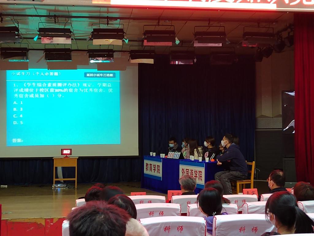 本次竞赛分为小试牛刀、奋勇争先、齐心协力、知难而进四个环节,分别覆盖个人必答题、集体必答题、抢答题、随机抽取观众答题等多种答题方式。公司万玉良老师、吴泓枰老师、学前教育2101班李天天、应用心理2101班任紫茉组成代表队参加了竞赛。