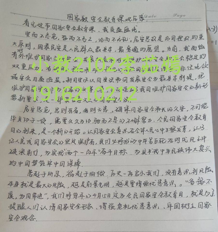 本月15日是我国第7个全民国家安全教育日,此节日旨在增强全民国家安全意识,维护国家安全。志愿者们在青协成员的组织下充分利用线上资源,观看国家安全教育的相关视频,通过学习,同学们了解了当代国家安全的16项基本内容,并进一步掌握了与维护国家安全密切相关的法律法规和基本知识,同时,提高了自身的安全防范意识。活动结束后,志愿者们用文字记录下了国家安全知识的学习心得,其中学前教育专业2101班郭小柯同学提到,国家安全始于足下,它与我们每个人都息息相关,每一位中国公民都有义务维护我国的国家安全,在这一问题上,我们必须防范在先,警惕在前,树立高度的安全意识。