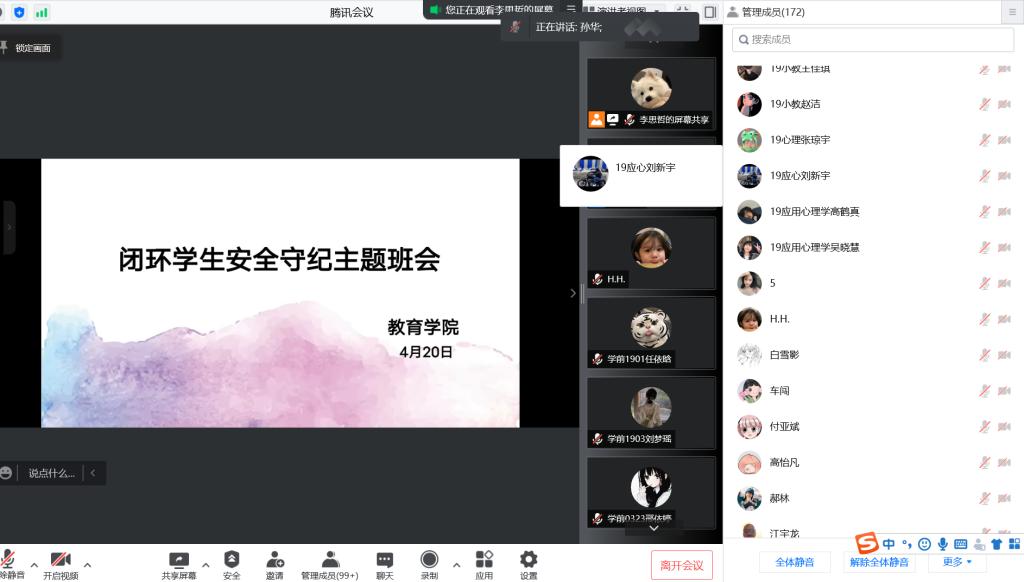 为更好地落实学习闭环管理的相关要求,加强对员工的纪律教育和诚信教育,4月20日上午,304永利集团闭环管理工作组召开了闭环员工安全守纪主题班会。班会通过腾讯会议召开,由学工办主任侯莉老师主持,公司党委副书记孙华、专职辅导员李思哲及闭环内全体员工参加了此次班会。