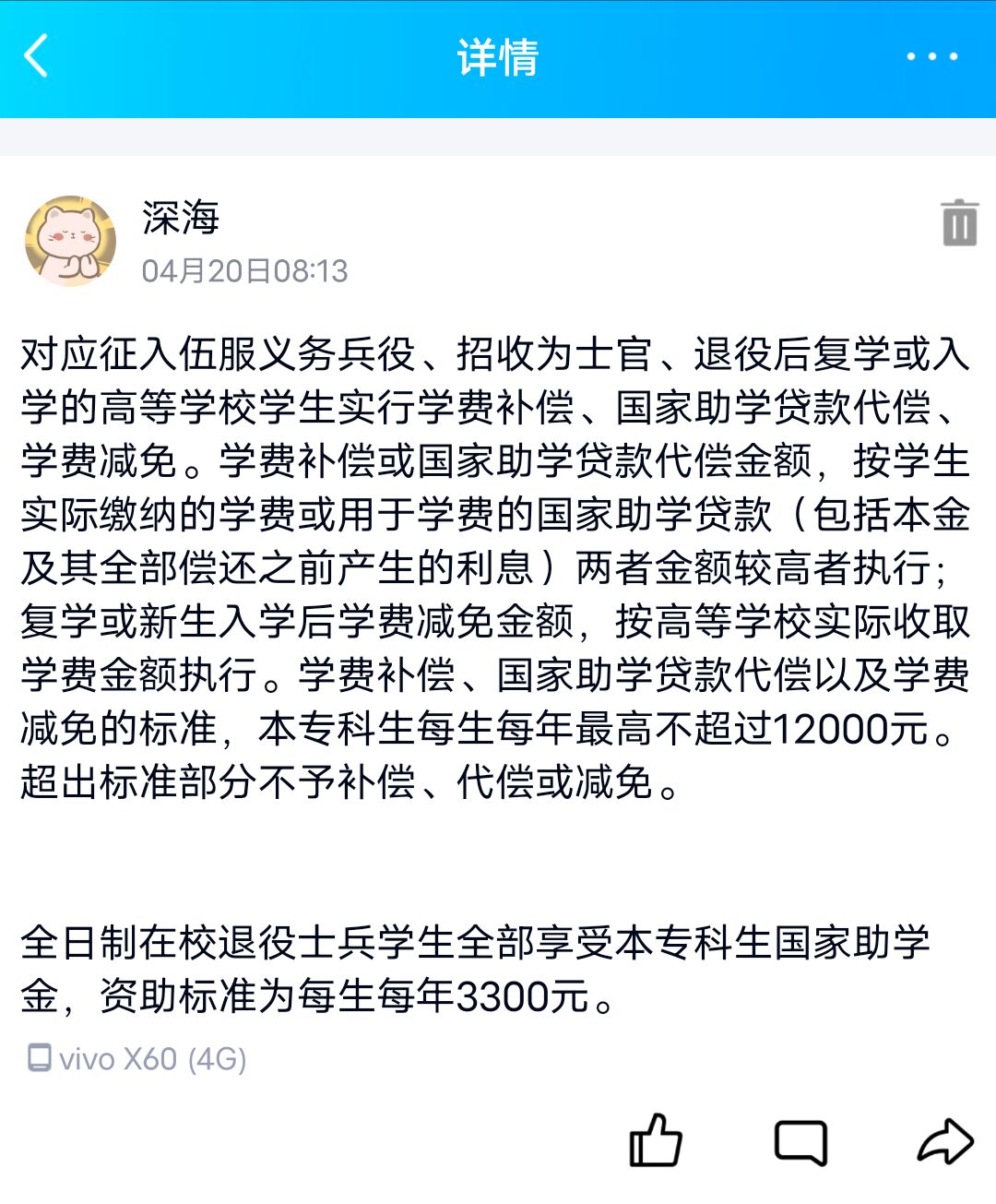 33名志愿者充分利用线上资源与员工手册,详细查询并了解到了国家奖学金、国家励志奖学金、国家助学金、国家助学贷款、师范生公费教育、新生入学资助项目等“奖贷助勤补免+绿色通道”多元混合资助,熟知了各项奖学金的奖励标准、申请条件和评议标准,切身体会到了国家为保障员工受教育权所做出的不懈努力。同时志愿者们坚持每日打卡,将学习内容及自身体会以文字形式分享至QQ空间,促使更多学子了解我国的资助政策。其中应用心理学2102班何劢同学表示,国家助学政策意义深远,这些政策的实施点亮了数以万计贫困学子的人生梦想,有效阻断了贫困代际传递。