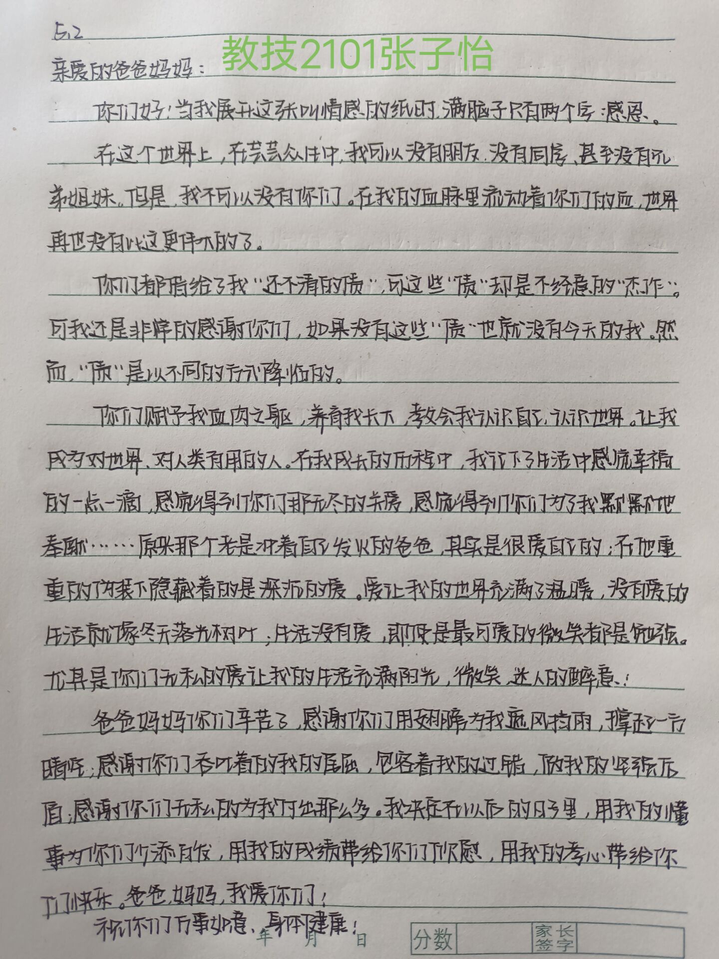 生活即教育,劳动创造美。33名志愿者积极参与本次活动,利用周末时间为父母做了一些力所能及的事情,如洗衣做饭、整理房间等等,努力成为父母的生活小帮手。同时,志愿者们还将自己的劳动过程录制为视频,以此来纪念这个特殊的劳动节。同学们纷纷表示不仅在活动中感受到了劳动的价值,体验到了劳动的乐趣,同时也切身体会到了父母长辈的不易,并保证在今后的生活中也要经常利用空闲时间做些家务。最后,志愿者写下了一封封感谢信,借此来表达对父母平日里无私付出的感恩。