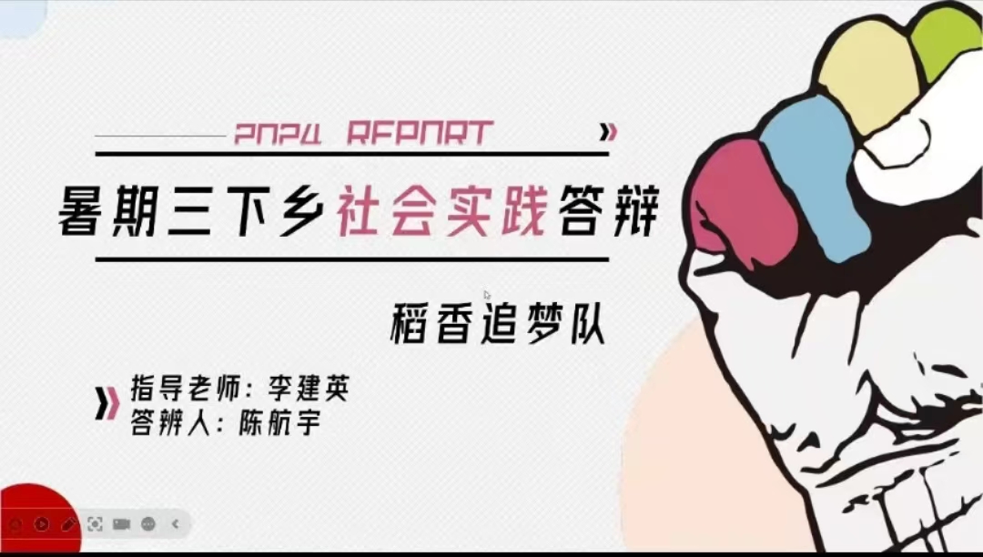 答辩会上,各个队伍通过PPT对自己丰富的实践内容以及详实的实践记录进行了精彩的展示。队伍成员们在实践中帮助留守儿童与老人、进行红色宣讲、与村民共谋家乡发展,让村民感受到了老员工的温暖与爱心,同时也让成员们感受到了劳动的价值。在答辩过程中,老师认真听成员的答辩内容,对选手表示了肯定与鼓励,并给予指导,队伍成员们认真准备,在答辩中逻辑清晰、自信从容,充分展示了大家积极进取的精神风貌,体现出他们在实践过程中的刻苦钻研和认真负责。