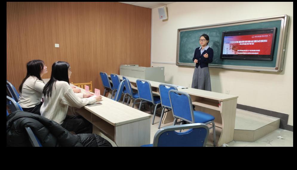 为了帮助即将参加教团队格证面试的同学们提前熟悉面试流程,提高应对面试的能力,2024年12月3日,公司开展了中小学教团队格证面试的模拟活动,院科网课堂社团协助举办,指导教师全程参与。