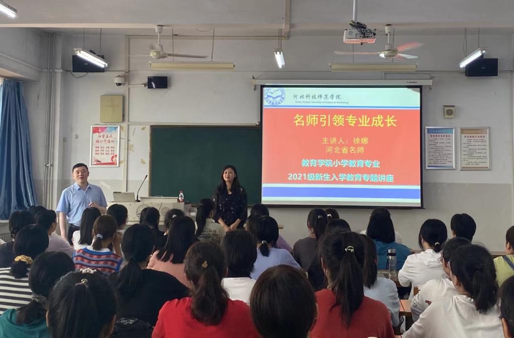 9月11日14点至16点,小学教育专业在开发区校区综合楼410教室举办了“名师引领专业成长” 2021级新生入学教育专题讲座。讲座邀请河北省名师、河北省骨干教师、河北省师德标兵、海港区滨河路小学徐娜董事长主讲,教学部副主任姚志刚老师和班主任吴泓枰老师参加了本次讲座。