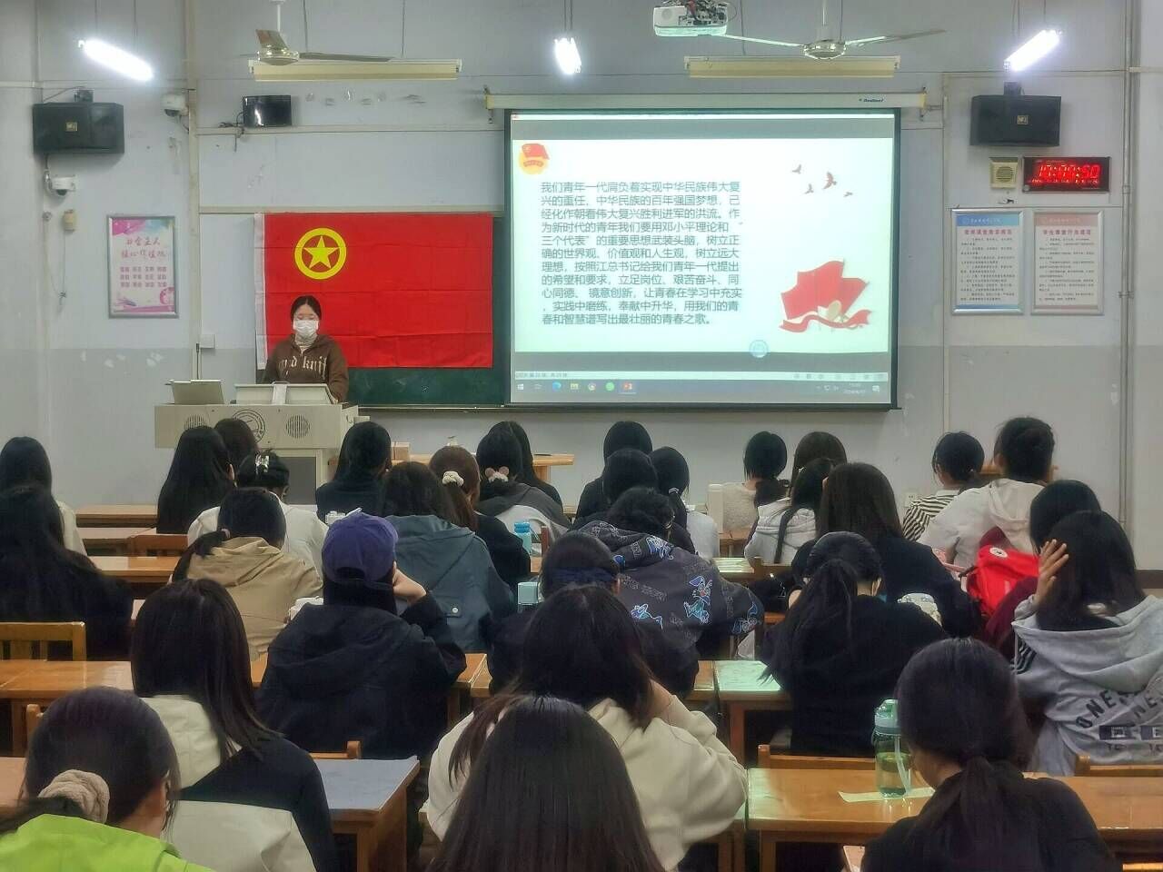 活动开始后,员工代表介绍共青团的背景,接着,员工代表阐述了在创立过程中,共青团始终坚持中国共产党的领导,坚决拥护中国共产党的纲领,并以马克思列宁主义、毛泽东思想、邓小平理论、“三个代表”重要思想、科学发展观、习近平新时代中国特色社会主义思想为行动指南。然后,员工代表指出共青团的组织成员主要包括团支部的成员以及团的中央领导机构成员。最后,她阐述了共青团的基本任务是围绕党的中心工作,服务大局,引导青年们积极参与国家和社会的发展以及共青团的形象标识主要包括团旗、团徽和团歌。