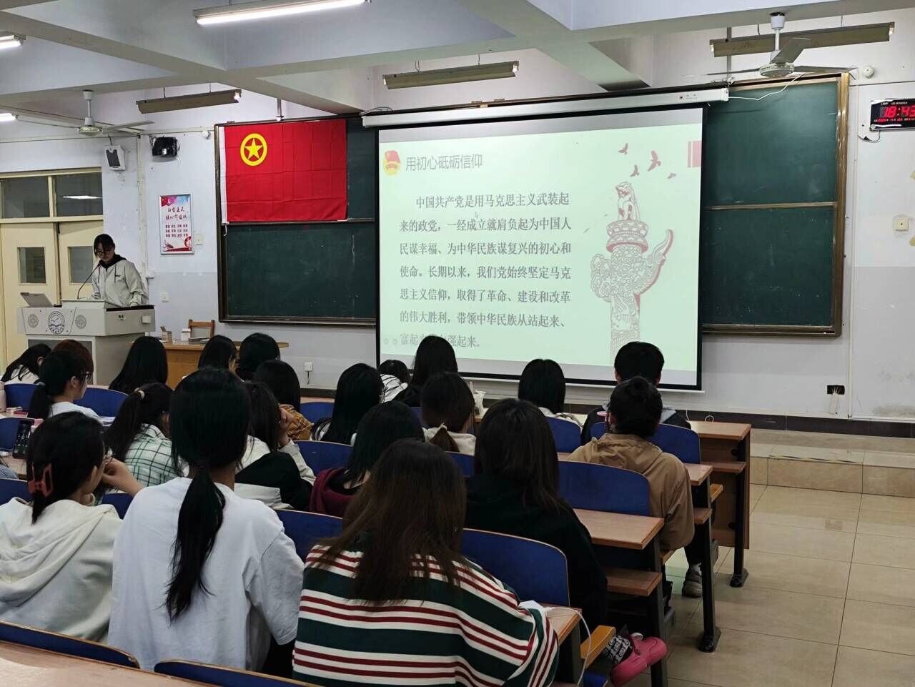 本次培训主讲人从用初心砥砺信仰,用理想坚定信念,用实践增强信心和贯彻党的基本路线四个方面展开,鼓励各位入团积极分子和共青团员要自信自强、勇于担当,坚定不移地跟党走好中国道路和弘扬中国精神,让学员们更加坚定了理想信念,充分提升了学员的科学文化素养和思想道德水平。培训结束后,大家纷纷表示,将牢记习近平总书记的殷殷嘱托,怀揣爱国之心,不负青春,不负时代,不负韶华,争当中国式现代化建设的生力军,以实际行动贯彻落实习近平新时代中国特色社会主义思想。