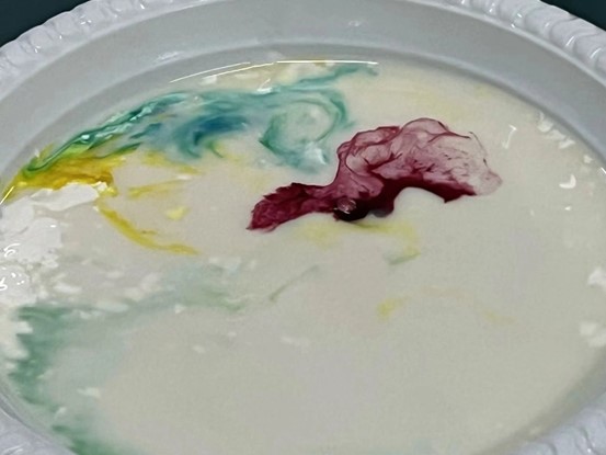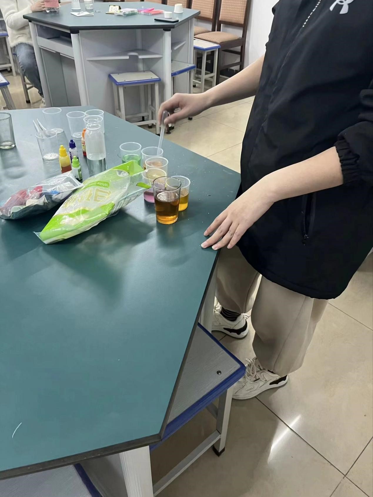 本次社团活动共有三个乐趣小实验,分别是牛奶烟花、光影投射和人造雪花。在实验活动的进行过程中,每个小组都积极配合,严格按照实验步骤进行实验,当实验过程中出现问题时,大家会集思广益,运用自己的所学知识一起解决问题,最终有所收获。