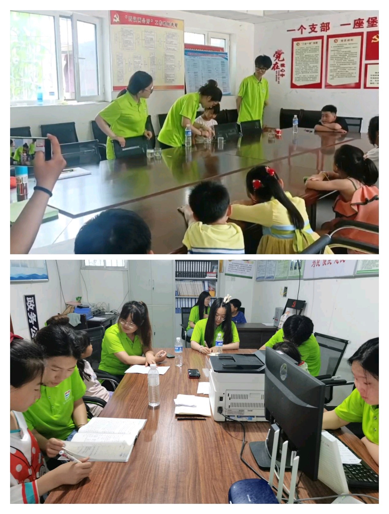 科学教育专业的团队成员依据所学专业知识设计了“站立的牙签”、“不会湿的纸巾”等多个科学小实验,通过一个一个有趣的小实验向小朋友们科普小知识,增强了留守儿童们对科学的兴趣,增强了他们的动手实验能力和独立思考能力。小学教育专业的团队成员则携同团队所有团队成员对留守儿童们进行课业辅导以及学科学习经验的传授,帮助他们高效完成假期作业,提升自己的薄弱学科。