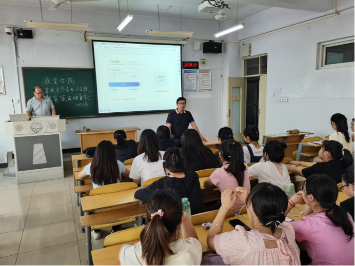 2023年8月29日,2020级教育技术学专业教育实习动员会在开发区校区综合楼704展开,教育技术学专业2020级全体员工和教学部全体教师参加。