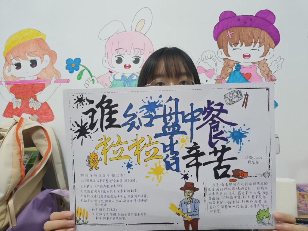本次活动开展了以“节约粮食、光盘行动”为主题的手抄报比赛,将节约粮食的格言、事例、实事和绘画结合起来,表达志愿者们对节约粮食的思考感想和认识普及宣传光盘行动的相关知识及必要性,引导同学们从现在做起、从我做起,告别陋习,将“光盘行动”落实到每一次餐饮中去,以自身的示范行动带动身边更多亲友践行节俭节约的新风尚,争做新时代文明餐桌行动的推广者和监督者。本次活动结束后,员工纷纷表示将增强节约意识,养成良好的节约习惯,不断加大宣传节约粮食的力度,为节约粮食贡献自己的力量。