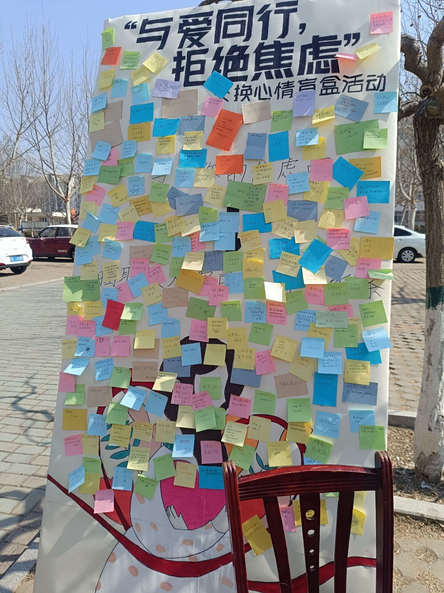 活动吸引了大量的同学关注“焦虑”问题,大家各抒己见,在便签上写下生活中的各种烦恼。同学们分享快乐,传递正能量,在便签上写下温暖的话语,希望将快乐赠予他人。帮助摆脱焦虑情绪的展板上贴满了写满心里话的便签,有祝福,有鼓励。此外,志愿者还准备了“拒绝焦虑”的答案之箱,箱子里提前放置了解答焦虑的答案,供同学们抽取以解决自己心中的焦虑。此次活动中,有助于帮助同学们培养乐观积极的心态,促进同学们心理健康成长。