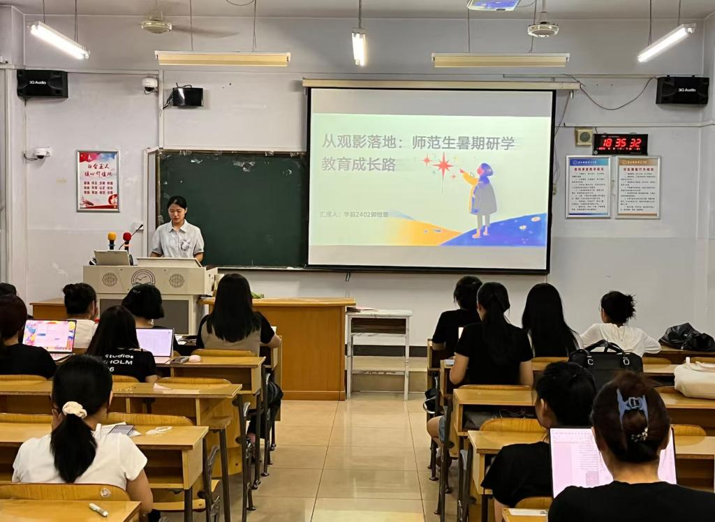 答辩过程中,各位选手生结合自身研学活动经历,围绕研学目的、研学经历、反思总结等方面,进行了汇报答辩。同学们的研学经历涵盖拜访优秀教师、书写书法作品、辅导中小员工课业、观看教育影片等多种形式。最后,评委老师针对员工展现的内容提出疑问并做出点评,帮助他们深化理解、纠正不足。
