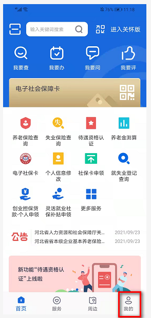 4.进入首页后点击右下角的我的进行人员验证登录。
