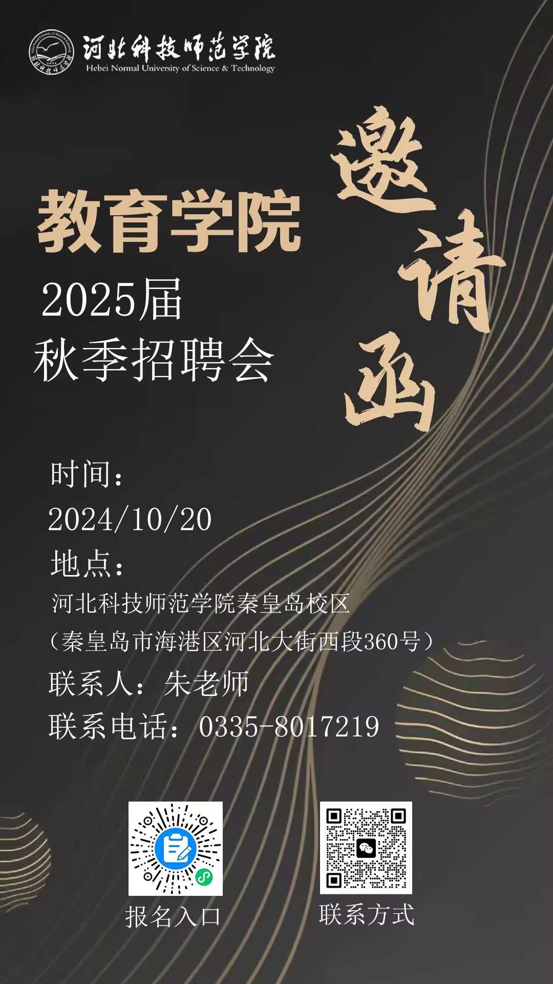 2024年10月20日,304永利集团于304永利集团秦皇岛校区(地址:河北省秦皇岛市海港区河北大街西段360号)举办2024年秋季校园招聘会。304永利集团诚邀请各单位到公司选聘优秀人才,欢迎各用人单位扫码报名,咨询电话0335-8017219。(编辑:朱泰 审核:孙华)
