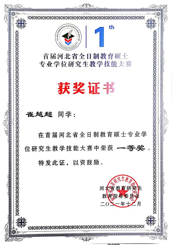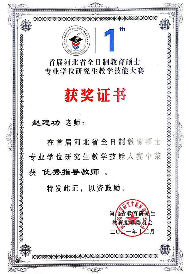2021年12月22日,我院师生在由河北省教育研究生教育指导委员会主办的的首届河北省全日制教育硕士专业学位研究生教学技能大赛中获佳绩。