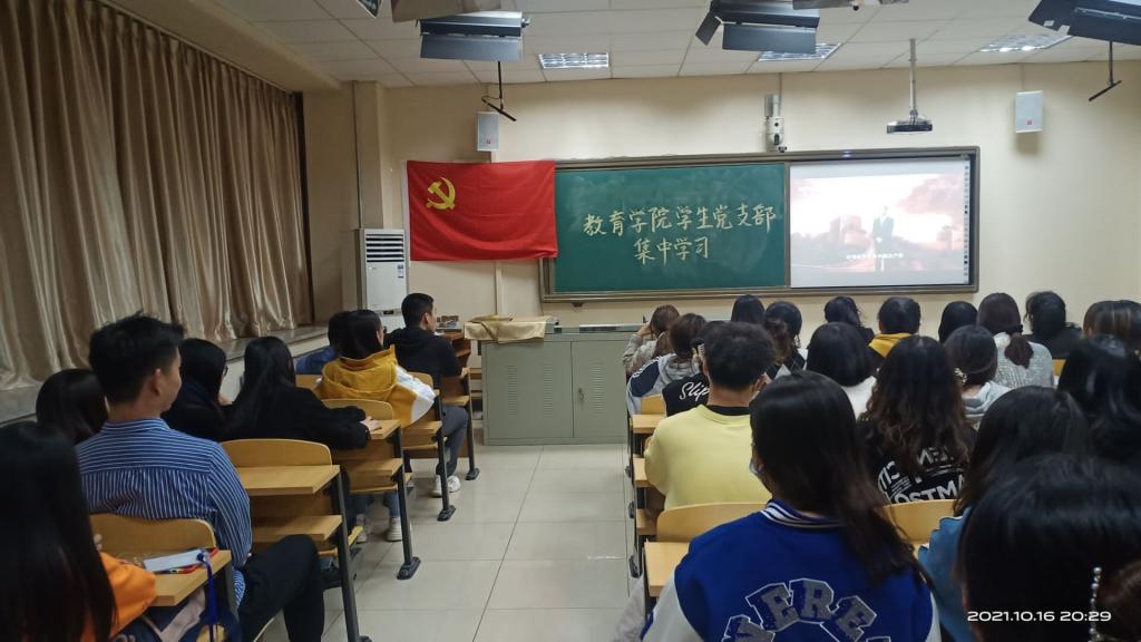 当日20:00,公司员工第一、第二党支部共61名员工党员准时到达教室观看《党课开讲啦》节目第一期《党的光辉历程》。本期节目由中共中央党校副校谢春涛同志担任主讲人,站在大历史观的高度,系统回顾了党百年奋斗的光辉历程,展望中华民族伟大复兴光明前景,激励员工党员们不断以新作为、新创造、新贡献践行铮铮誓言,胸怀理想、志存高远,投身中国特色社会主义伟大实践并为之奋斗终生。党课思想深刻、内涵丰富,学习现场氛围浓厚,集中学习结束后,大家展开了热烈的讨论。学前教育1802班梁子瑶如是说:“新的征程上,我们要不忘初心,牢记使命,坚定信念砥砺前行,不辜负历史和人民的巨大信任和深切期望,让党旗在心中高高飘扬!”应用心理1801班的付婧也表示:“这堂专题党课主题鲜明、内容深刻、催人奋进,我们将牢记红色历史,坚定理想信念,为走好新时代复兴路贡献力量。”一番激情洋溢的讨论过后,大家纷纷表示:要以史为鉴,从党的百年历史中汲取智慧和力量,铭记党的光辉历史,赓续红色血脉,不断提高政治判断力、政治领悟力、政治执行力,行稳致远走好新时代长征路。